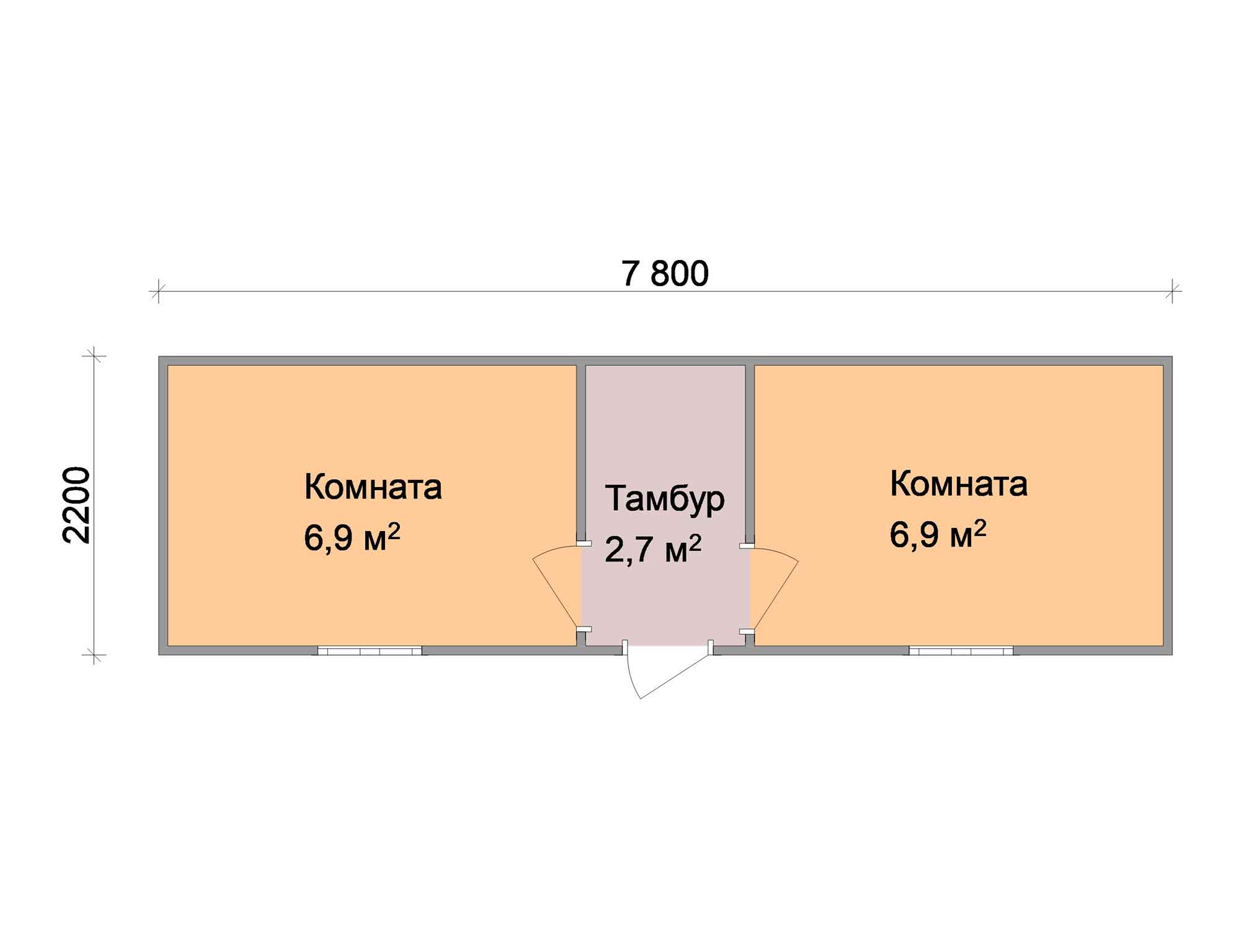 Дачная бытовка Тюльпан6.8x2.214.96ДВП-Оргалит: